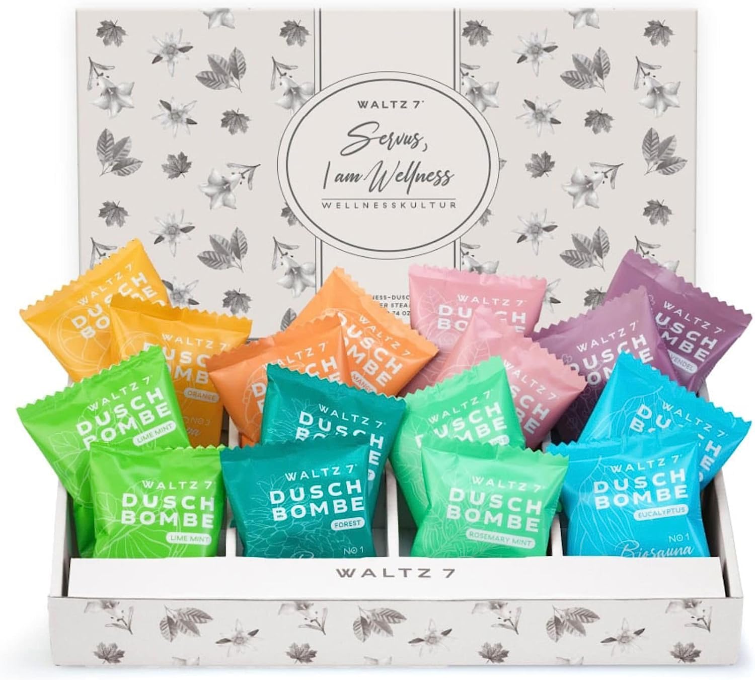 Shower Steamer Set, 16 Pieces, 8 Scents, Quality Made in Europe, Natural Essential Oils, Aromatherapy Bombs, Stress Relief, Self Care Gift for Women, Mom, Grandma, Birthday, Mothers Day