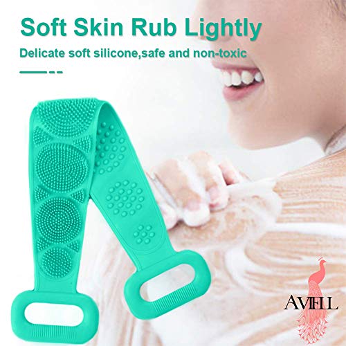 Silicone Body Scrubber,Bath Body Brush For Shower,Exfoliating Dual Side Scrubby Buddy,New Version 2020 Easy To Clean Long Hygienic Washer For Men And Women,Deep Cleaning Massage Scrubbers (Green)