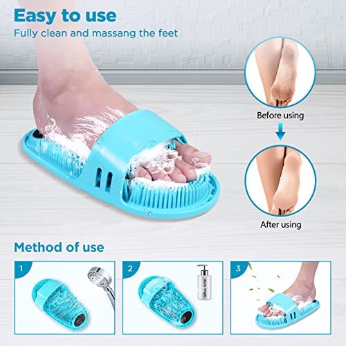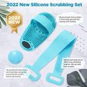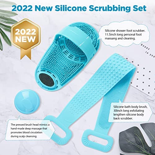 Silicone Shower Foot Scrubber Plus Shower Body Brush Plus Hair Scalp Massage Brush,Personal Easy Shower Cleaning Kit For Men And Women,Bathing And Scrubbing Suit(Light Blue)