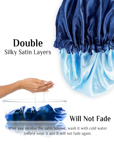 Breathable and ReversibleOur satin bonnets are made of high quality silk satin which is breathable,keep your hair hydrated and that your conditioning products arent soaked up by your pillowcase.Keep your pillows clean and your skin clear.Improve the appearance of skin and makes your hair products work harder.our reversible hair bonnet does not fade easily when washed.