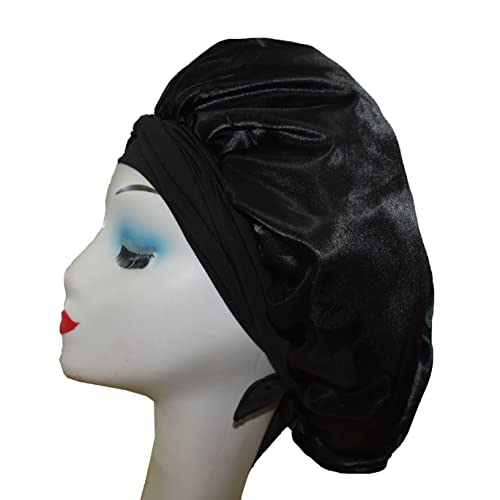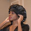 This is a Black Satin Silk Hair bonnets, it can hold women or men long curly hair, locs, natural hair, braids etc, most of hairs.