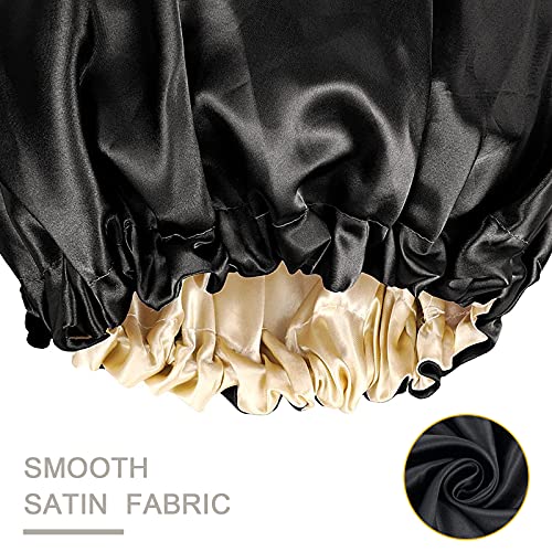 Double Waterproof Layers Silk Bonnet for Curly Hair: 2 layer design, easy to clean, also to avoid the water into the hair when you washing your face or taking a bath; Silk satin can keep your hair frizz-free and prevent the hair from hanging if you have curly hair, let you wake up with a beautiful hairstyle.