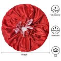 Satin Bonnets Large Hair Bonnets Sleeping Cap Big Brim Satin Hair Wrap for Women Features Material: 100% polyester Color: purple, black and burgundy Bonnet diameter: 14 inches WARM NOTICE 1.Wash with washing soap before use. 2.Regularly wash and keep the satin sleeping bonnets clean and dry will extend their service life. 3.Please pay attention to the size before place order.