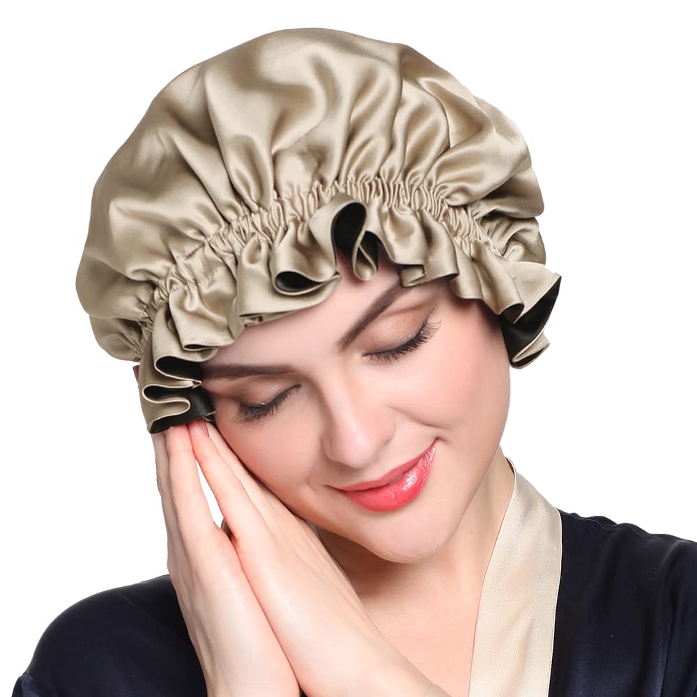 Silk Lined Work Cap With Button For Long Ponytail Hair Women Black