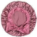 Jumbo Bonnet Stays On All Night: Tired of skimpy sleep caps that keep sliding off your head Our Extra Large Bonnet measures 22”-25”, so it holds even the thickest hair gently yet securely all throughout the night; Plus, it has an extra-wide stretch band and adjustable satin ribbons; Simply wrap and tie the ribbons for stay-put custom fit
