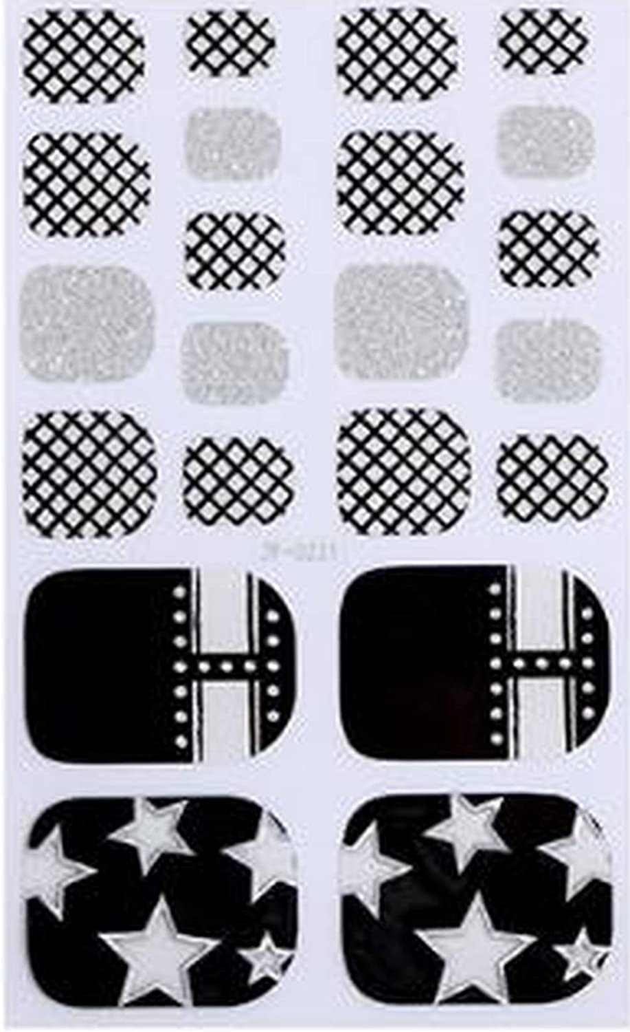 Black Silver Glitter With See-Through Stars Chain Fence With Rhinestone Inspired Look For Your Toes These Very Cute Toe Nail Wraps Are Sure To Get You Noticed.