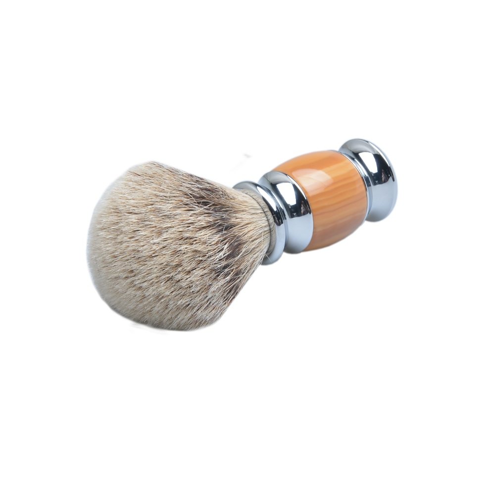 Luxury Faux wood handle shaving brush with silvertip badger hair Material:resin +silvertip badger hair color:faux wood Hair size:20*65mmshippment:by e-packet,about 7-15 working days to USA,in Winter,a little delay because of snow weather.