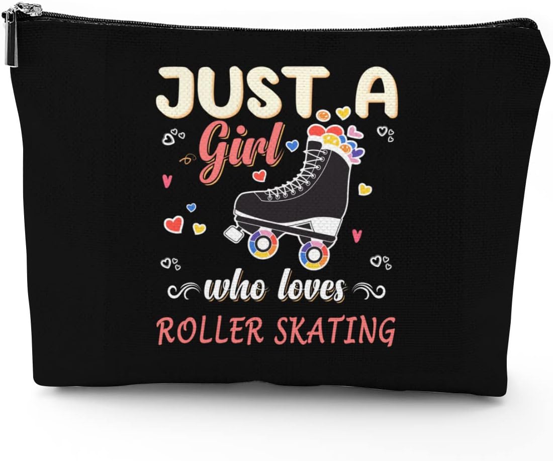 Skater Gifts Just A Girl Who Loves Roller Skating Roller Skating Roller Skates Lovers Makeup Bags for Women Student Friends Sister Daughter Birthday Party Christmas Gift Travel Cosmetic Pouch