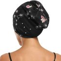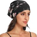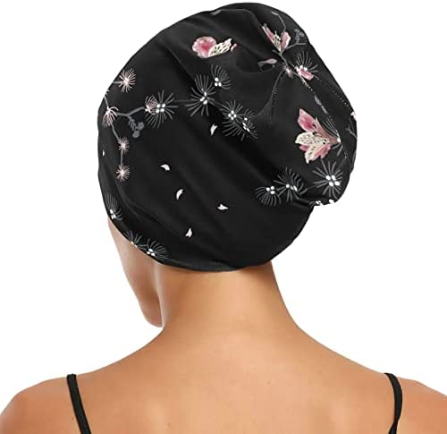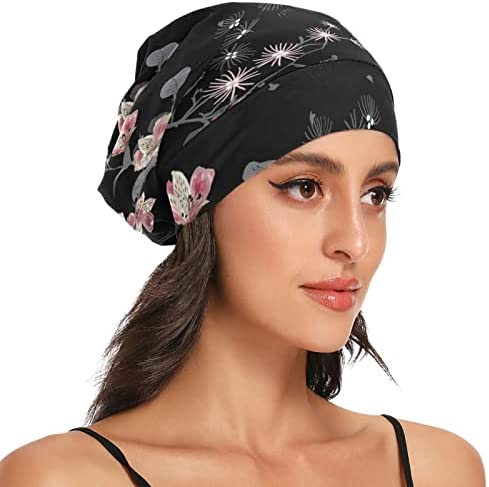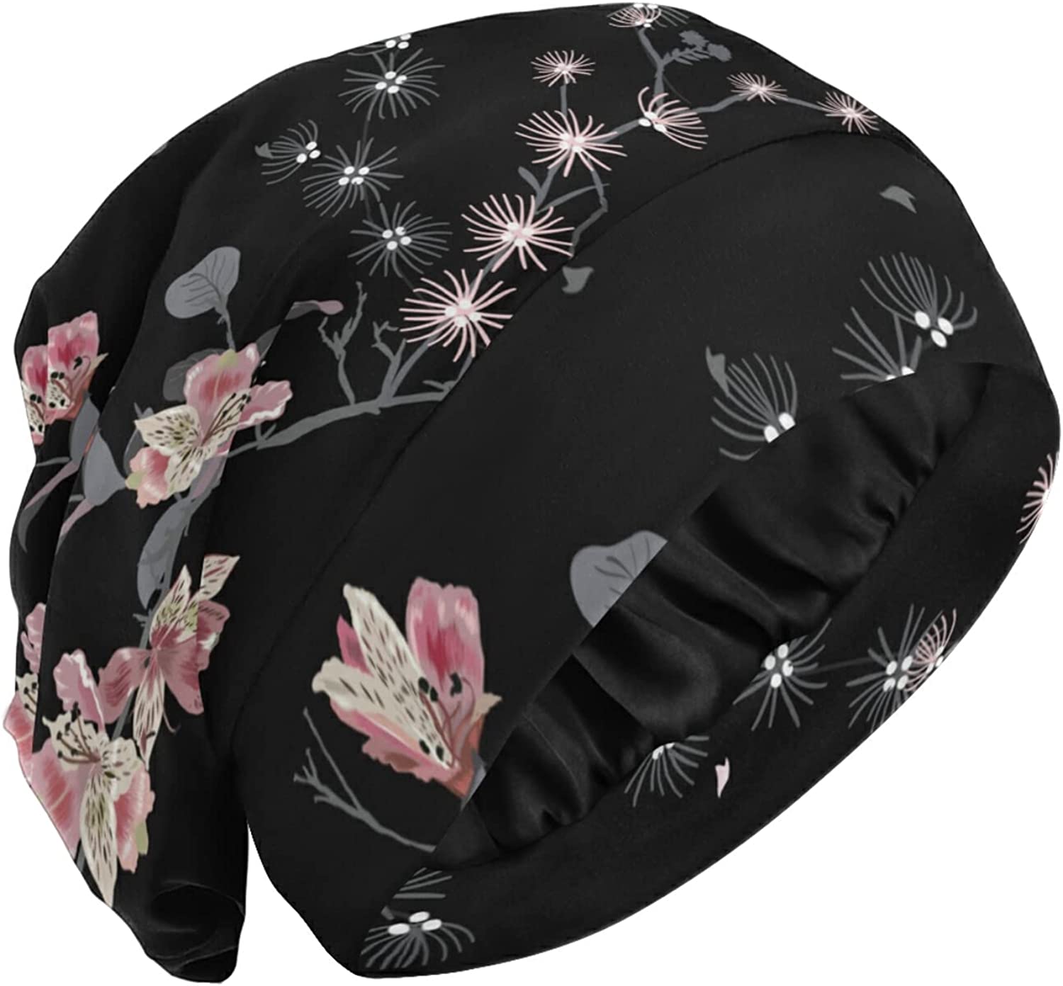 Sleep Cap Spring Flowers Branches Satin Lined Cap Cotton Slouchy Beanie Skull Cap Night Hair Cap For Women Black