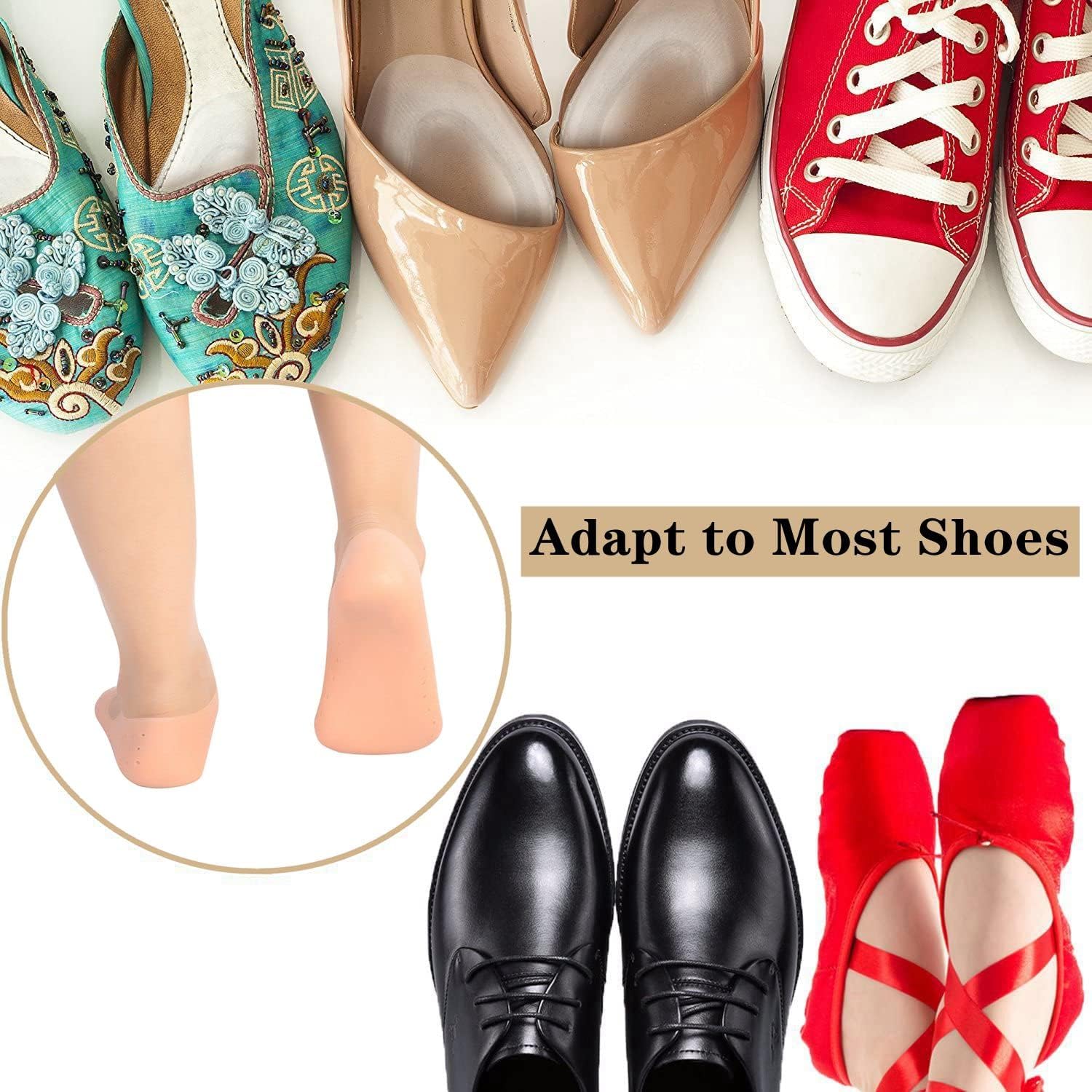 Specification: Item Type: Silicone Socks Material: Silicone Optional Color: Pink, White, Skin Color Optional Size: S, M, L Quantity: 2Pcs Size:CN Size Item Size Package Weigh:L 40-45 21 * 10cm / 8.