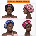 Soft Silk Hair Bonnet With Wide Band,Comfortable Night Sleep Hat Hair Loss Cap (4 Pack)