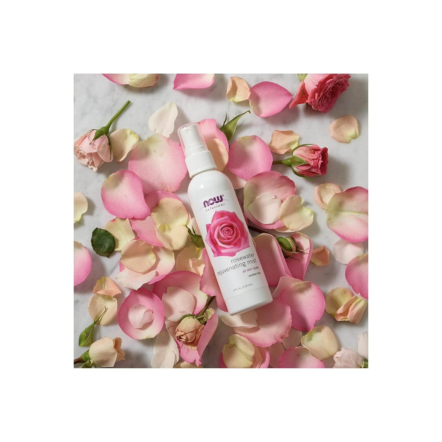 Apply NOW® Solutions Rosewater Rejuvenating Mist on cleansed face as a facial toner, to set makeup, or to refresh and moisturize skin or hair any time of the day.