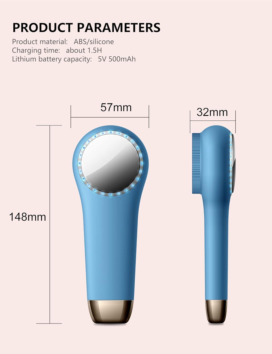 Sonic Facial Scrubber Exfoliator Brush,Heat&Cool Face Brushes for Cleansing and Exfoliating,Waterproof Electric Face Cleansing Brush,Rechargeable Face Cleansing Brush,Face Scrubber MistyBlue