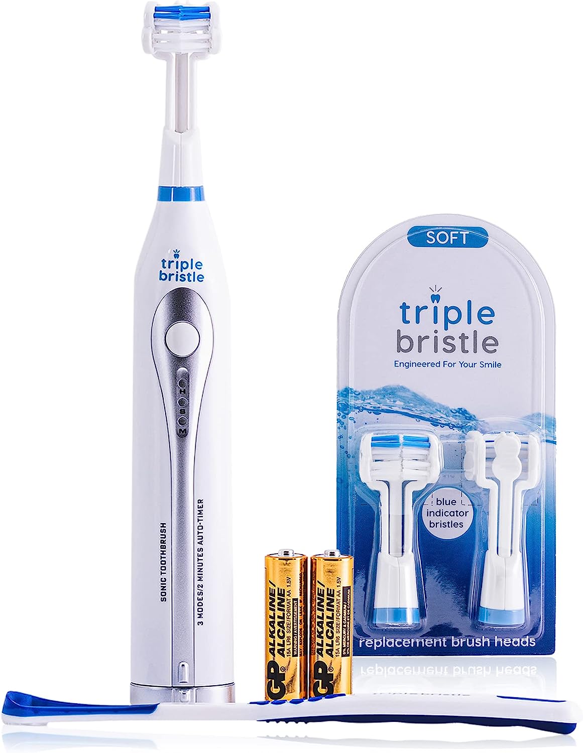 The three flexible brush heads adapt to teeth of all shapes and sizes, making dental work comfortable and gentle on braces, implants, crowns, and veneers.