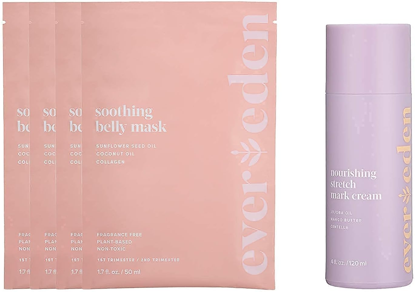 Soothing Belly Mask – 1st/2nd Trimester Size, 4 Pack & Nourishing Stretch Mark Cream, 4 fl oz | 5 Item Bundle Set | Clean and Unscented Pregnancy Skincare