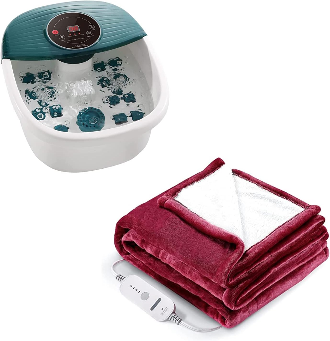 Spa Bath Massager with Heat, Bubble and Vibration, 95-118℉ Adjustable, Electric Blanket with 4 Heating Levels & 3H Auto Off, Super Soft Flannel Heated Throw Blankets 50”×60“, ETL、FCC Certified