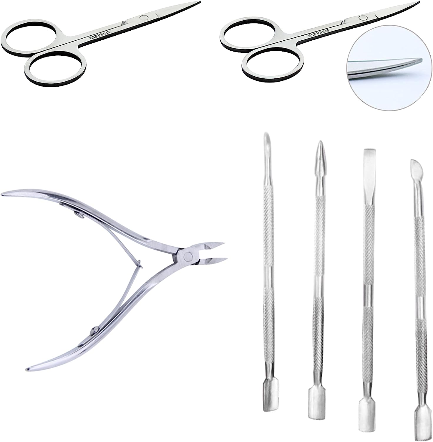 Curved Cuticle Scissors: Curved blades offer closer cuts.