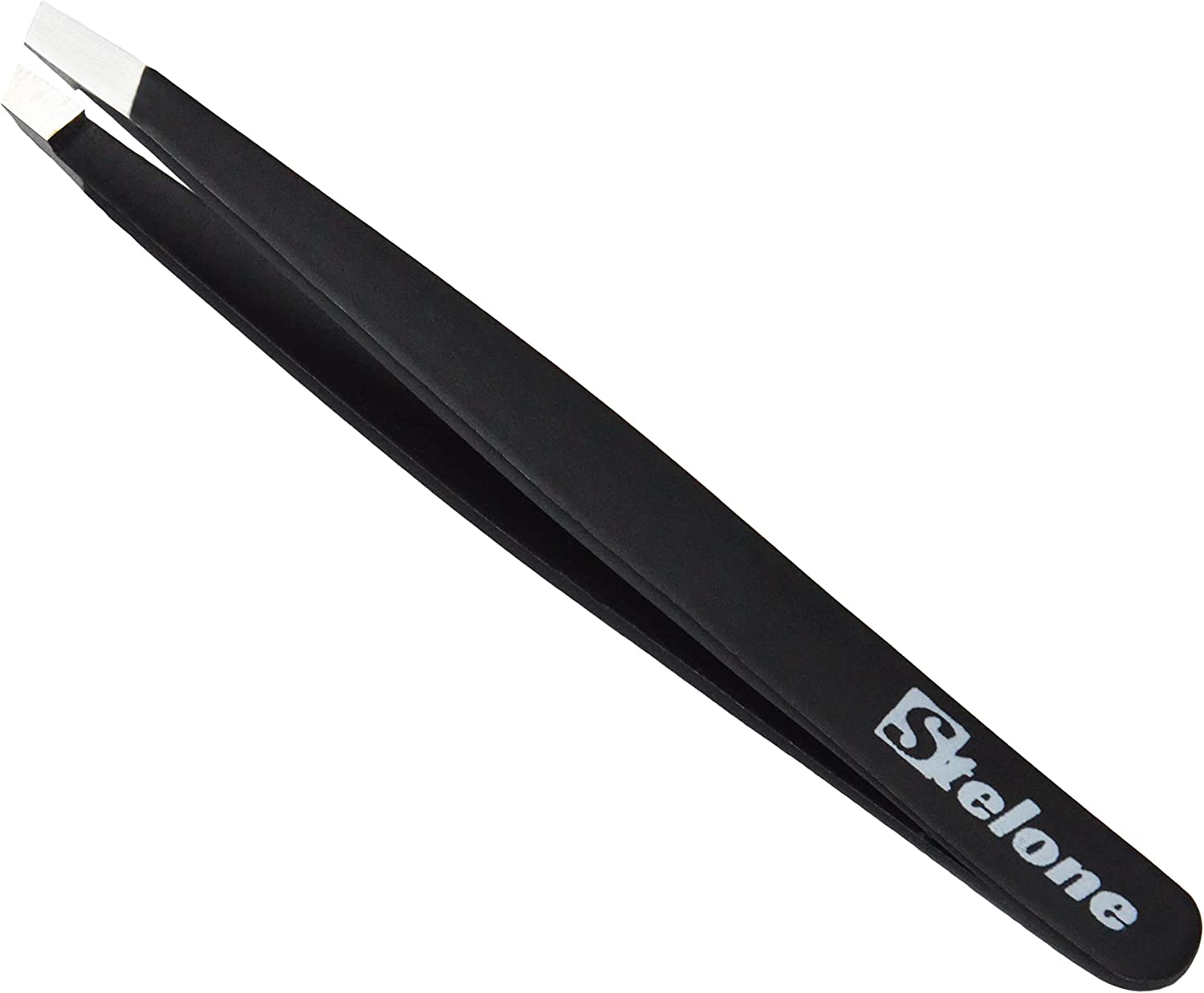 Stelone Tweezers for Eyebrows – Slant Tip Professional Stainless Steel Eyebrow Tweezers for Women & Men – Great Precision on Brow, Facial Hair & Ingrown Hair (Black) : Beauty & Personal Care