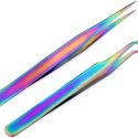 Straight & Curved Tweezers 2 Pieces Eyelash Extension Tweezers Set Stainless Steel Tweezers Lash Extension Tweezers Eye Makeup Tools (Gold) : Everything Else