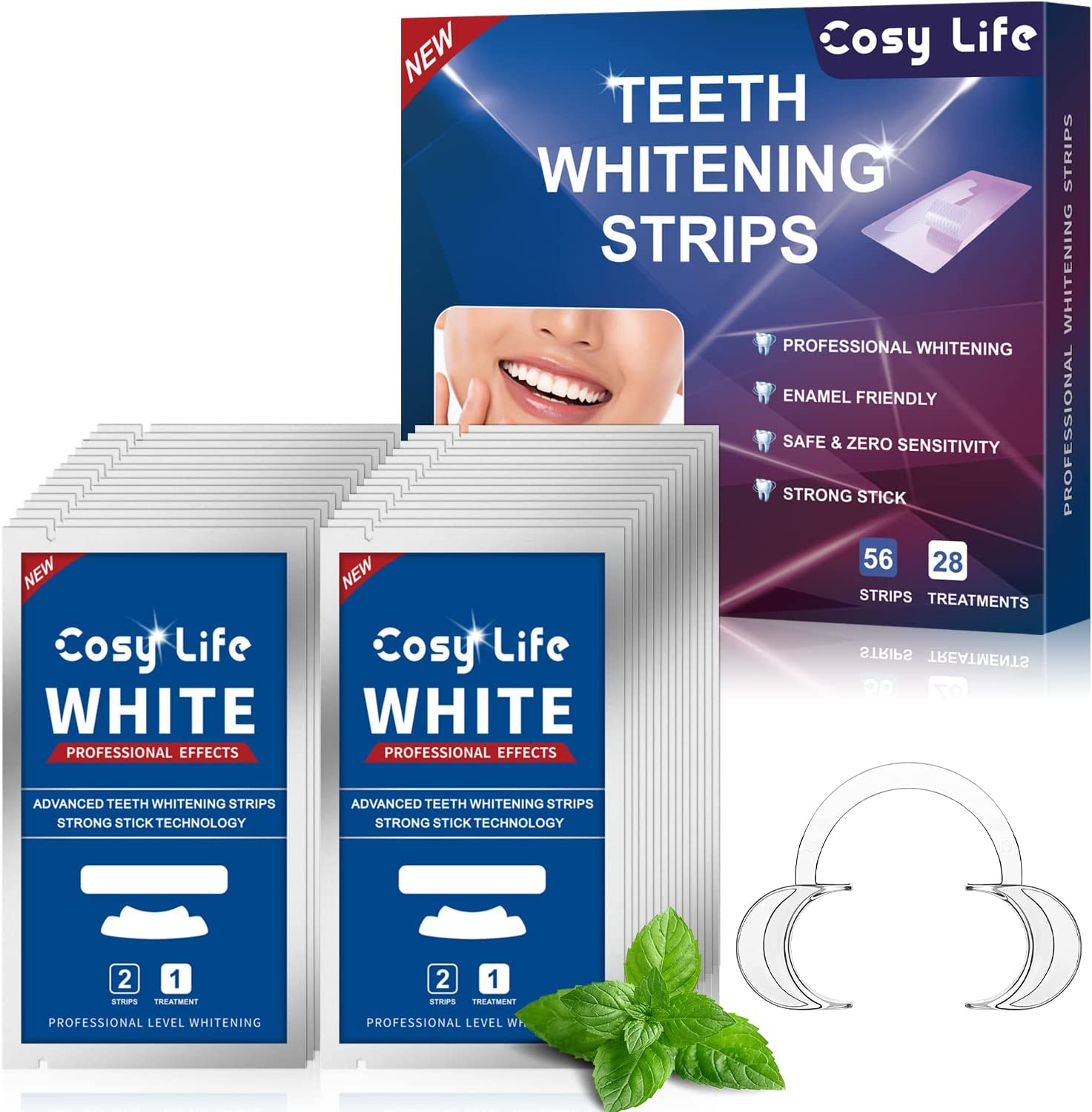 Visible Change to TeethApply the white strips for teeth 30 minutes per day, and stick to it, teeth will become a little whiter after 2-3 use. Our single whitener pack contains 56 strips (28 upper and 28 lower) – 28 treatments. While 7 treatments for a cycle, our double amounts than others will keep your teeth whitening effect last longer.