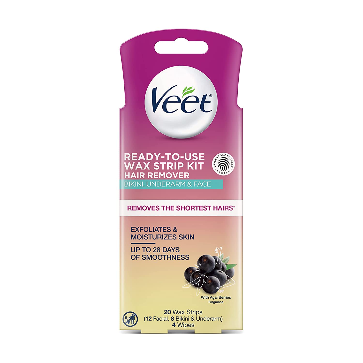 There are 64 large hair removal wax strips in each package, which can be cut to size matching the area that you’d like to remove hair from: Arms, Legs, Underarm Hair, and Bikini line.