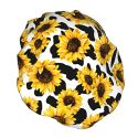 Sunflower Waterproof Shower Cap,Elastic Reusable Bathing Hair Cap For Women Girls Long Hair Double Layers Bathing Shower Hat