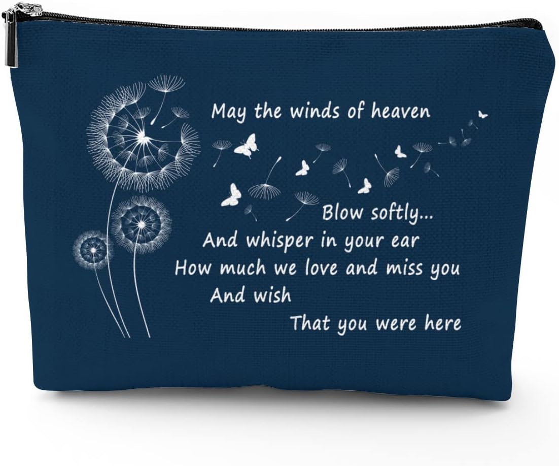 Sympathy Condolence Gifts Memorial Bereavement Gift for Loss of Loved One, Loss of Mother Cosmetic Makeup Bag Remembrance Gift for Coworker Family Friend, May The Winds Of Heaven Blow Softly