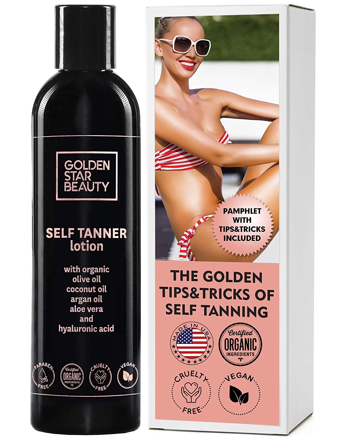 COMPROMISE FOR NOTHING ELSE THAN THE BEST: Made in the USA under strict quality control and featuring certified organic oils (olive oil, argan oil, jojoba oil, coconut oil, avocado oil), organic aloe vera, hyaluronic acid and intense moisturizers. Fight sunburn, early aging and reward your skin with our premium self tanner.