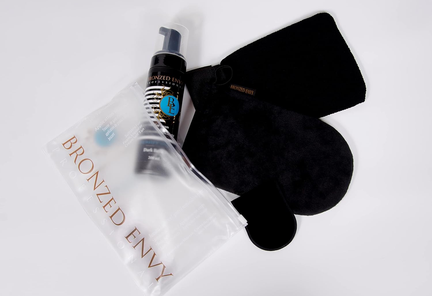 The kit is also perfect to place any brand bottle of instant self tan (no larger then 8 inches in height) inside the kit bag for a snug hold – An option for that “On-the-Go-Tan”! Note: This Mitt Kit does not come with a bottle of instant self tan.