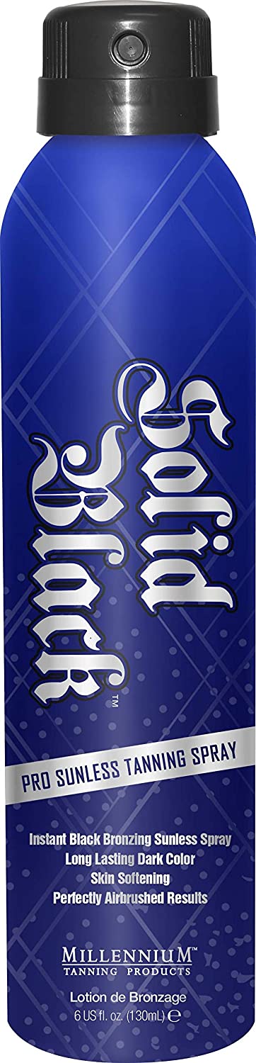 Millennium Tanning Solid Black PRO SUNLESS Self Tanning Spray Organic DHA Instant Self Tanning Bronze 7 fl oz Achieving Instant dark color is now just one spray away! With Solid Black’s Pro Sunless Spray you will receive dark immediate and dark delayed bronzing results with our unique blend of natural DHA, Walnut extracts and skin softening Argan Oils.