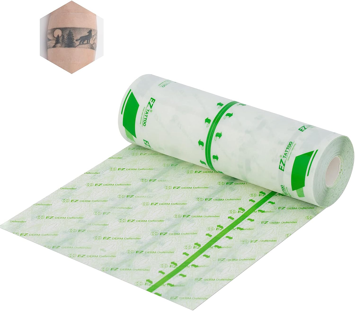 Faster Healing Time- Because of how effective our tattoo aftercare waterproof bandages are, most tattoo artists prefer EZTATTOO. Using EZ tattoo aftercare bandages can cut healing time in half for most tattoos. User report it makes tattoos brights brighter and darks darker.