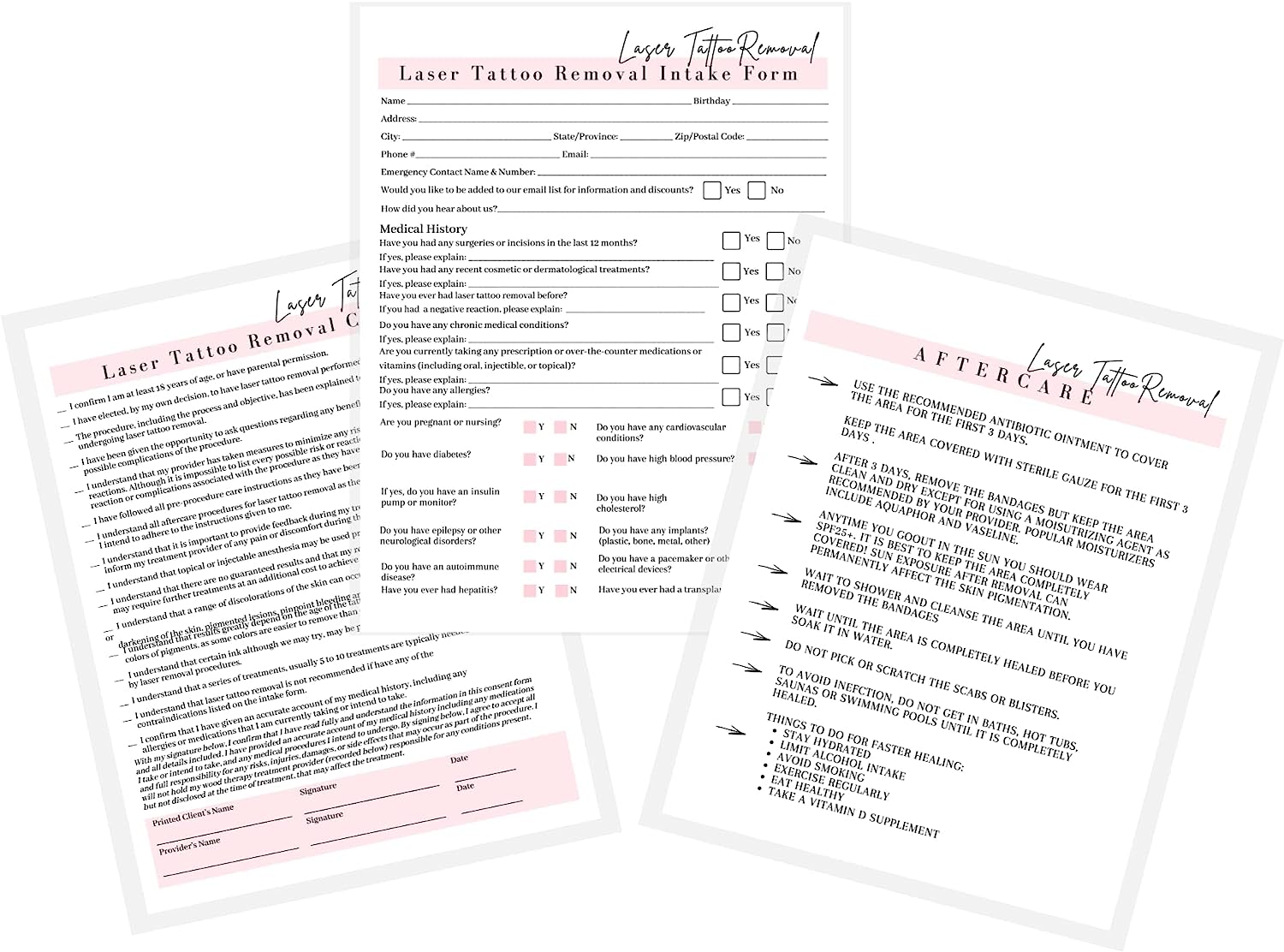 They include laser tattoo removal informed consent forms, intake forms, and aftercare forms! For more options check the shop “”.