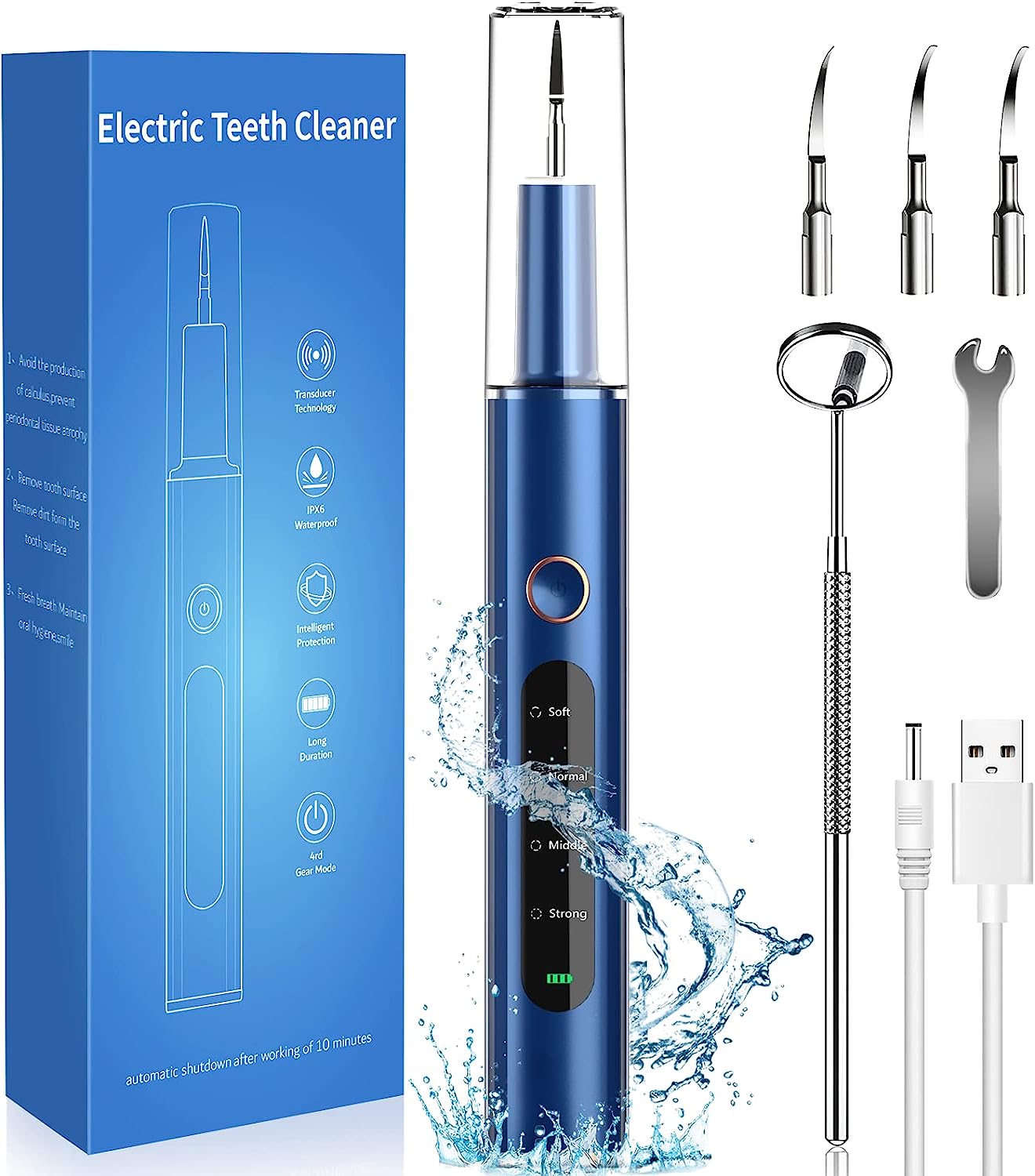4 Modes & 4 Replacement Heads – Our powerful dental calculus remover has 4 adjustable cleaning modes: Soft,Normal, Medium and Strong, Large LED screen display can display power and mode types clearly. There are extra 3 replacement heads for your different needs, tip heads for cleaning small stains in the gums and flat heads for cleaning large plaque on the tooth surface.