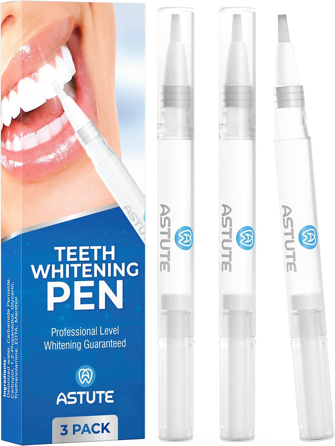 Do you want to enhance the brightness and whiteness of your teeth without the costly, time-consuming trips to the dentist? Astute Teeth Whitening Pens offer a quick and simple method to achieve whiter teeth and a brighter smile — faster than ever before, with just one minute of daily use!PRODUCT FEATURES:Up to 35 UsesFine Brush Applicator TipGo 4-8 Shades LighterMint FlavorPeroxide FormulaPROFESSIONAL QUALITY WHITENINGOur whitener pen is the perfect at-home, affordable solution for effective teeth whitening, with no pain or sensitivity.