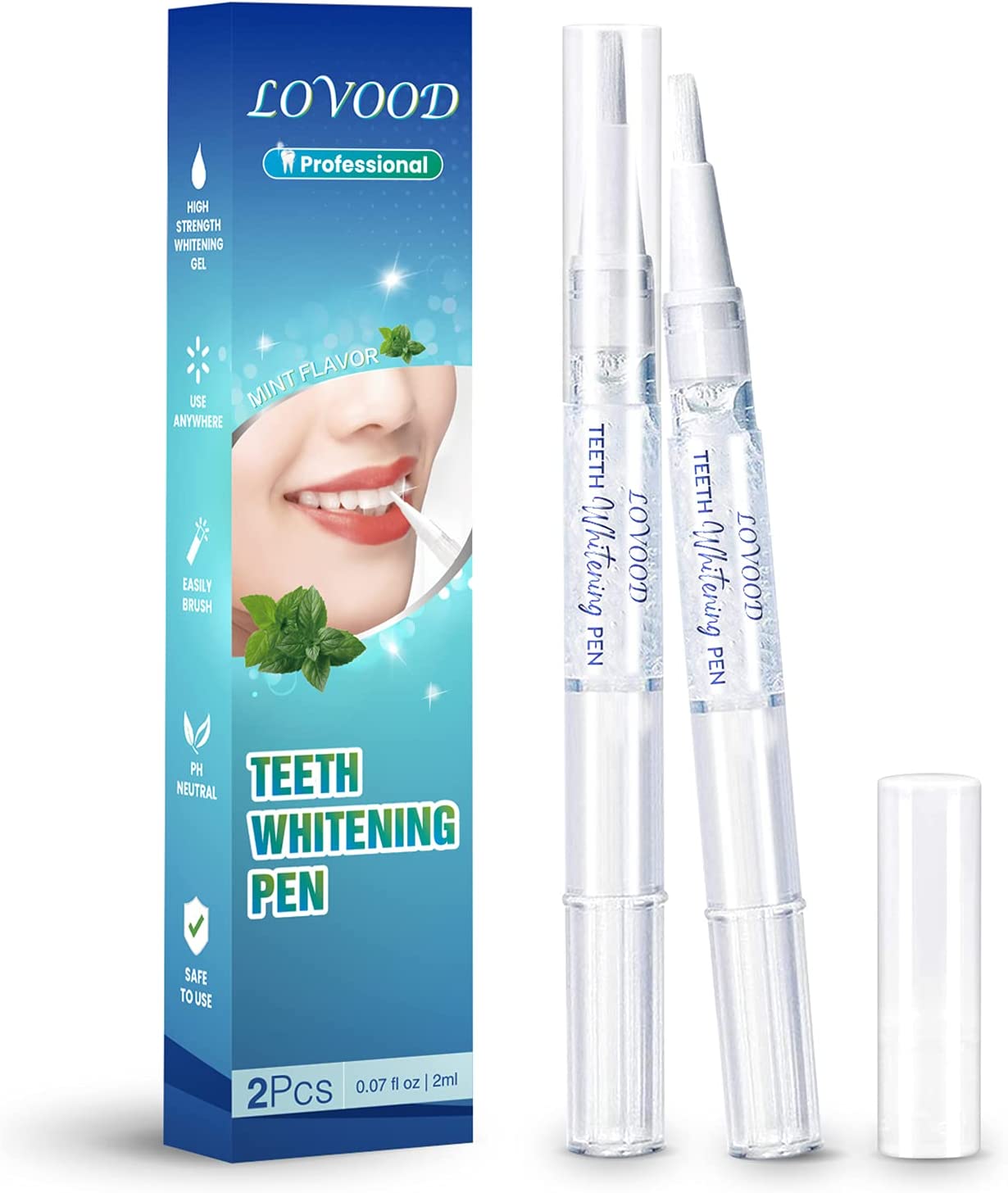 Teeth Whitening Pen – LOVOOD Professional Teeth Whitening Pen contains Carbamide Peroxide, a safe form of peroxide, to effectively and quickly remove years of stains caused by 16+ reasons such as coffee, tea, wine, smoking, soda and more. It is the perfect at-home painless teeth whitening solution.