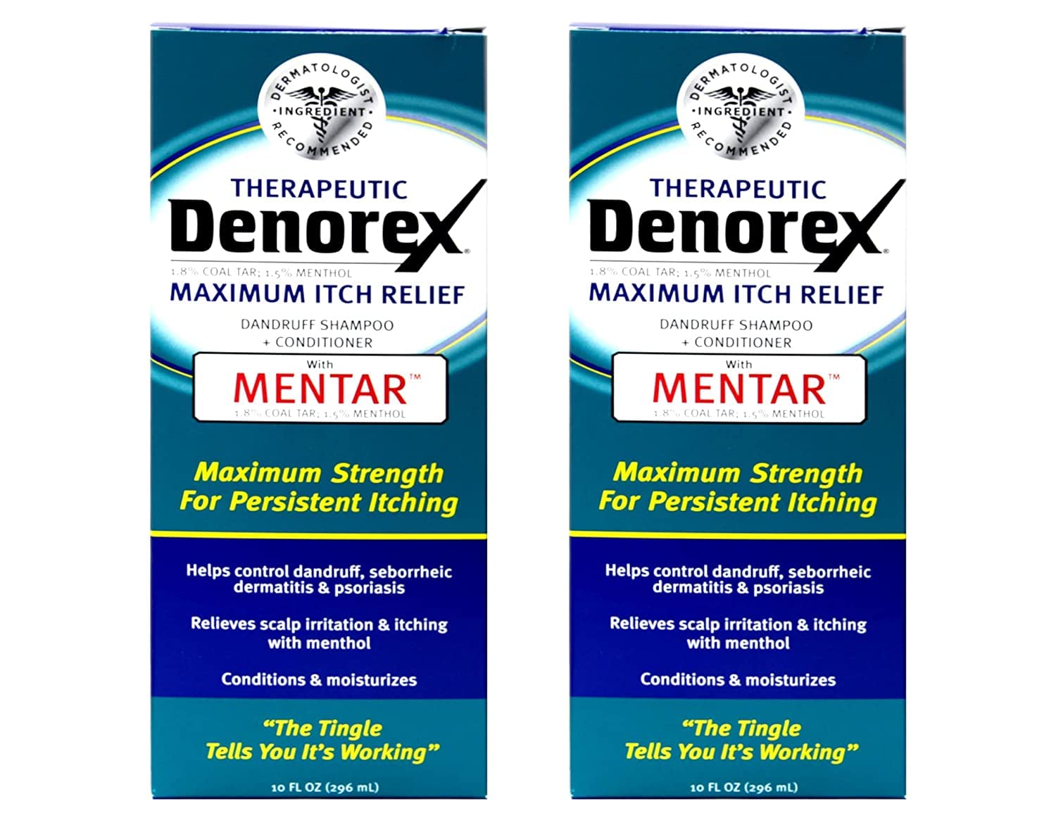 Denorex Therapeutic Dandruff Shampoo + Conditioner, Maximum Itch Relief 10 oz (Pack of 2)
