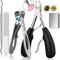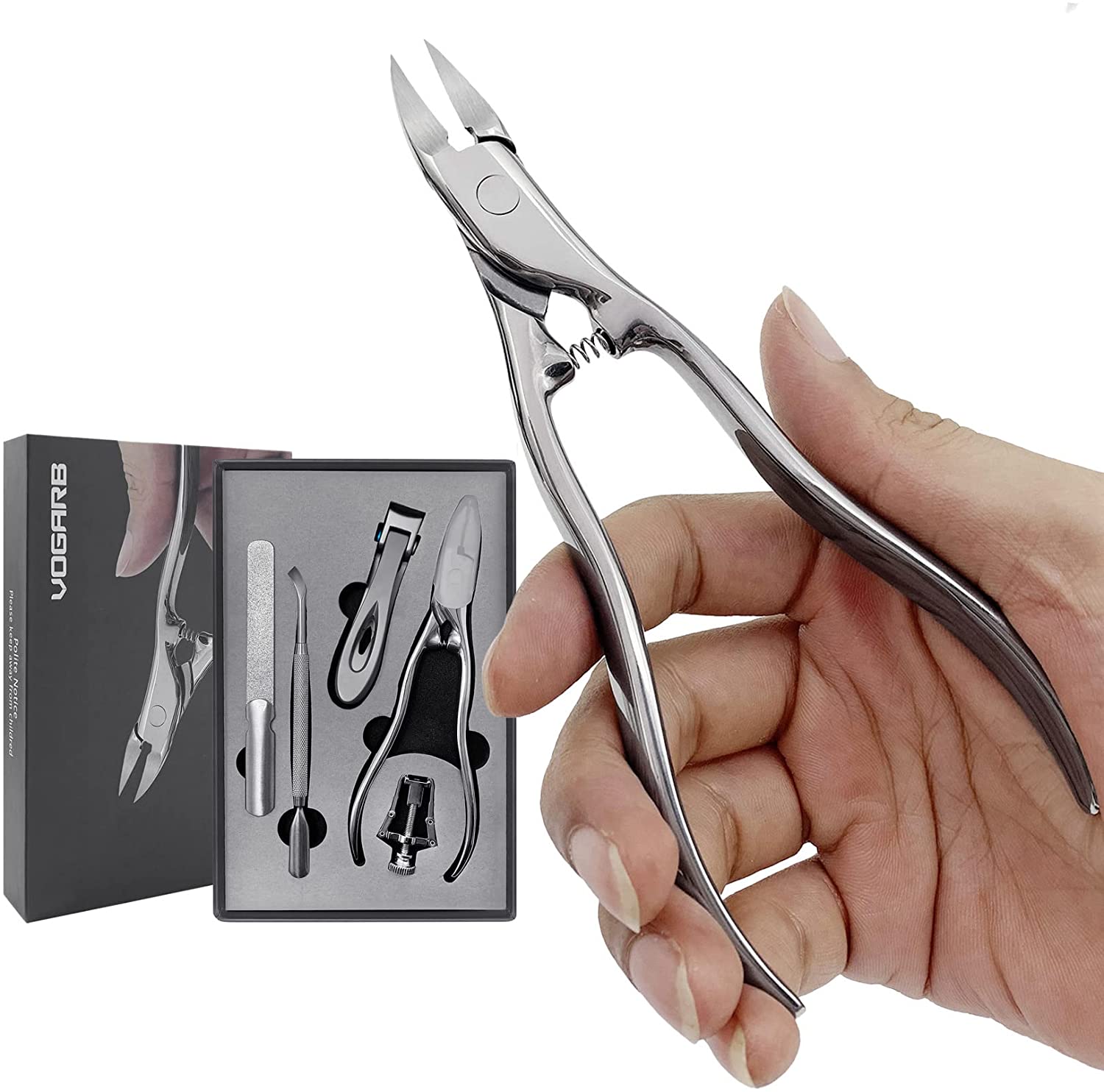 4-in-1 Large nail clippers set1 X podiatrist toenail clippers for ingrown Toenail Treatment + 1 X 16mm wide jaw opening nail clippers + 1 X nail polish file + 1 X Ingrown toenail lifter.With stainless steel tin box packaging.Each nail kit are made of 100% heavy duty stainless steel for no rust,sharp and sturdy.
