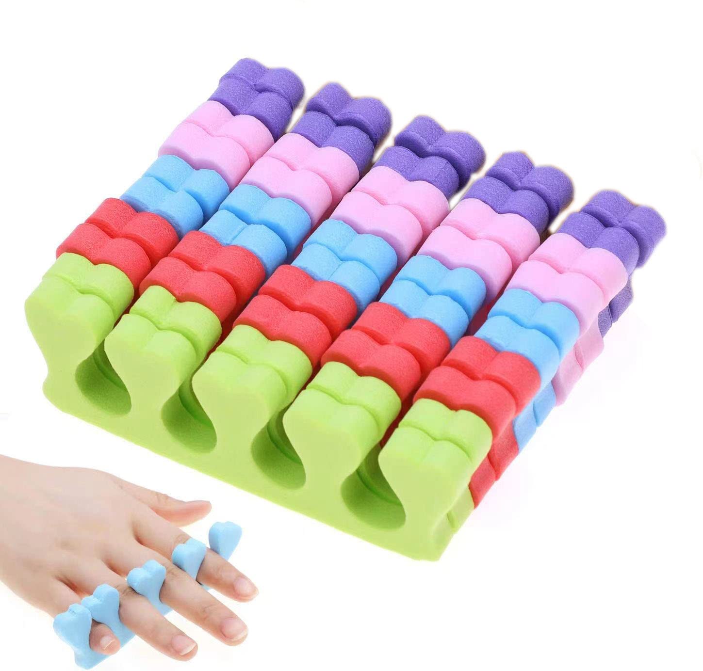8 cm Packaging includes: 4pcs blue toe separators 4pcs purple toe separators 4pcs orange toe separators 4pcs pink toe separators 4pcs green toe separators
