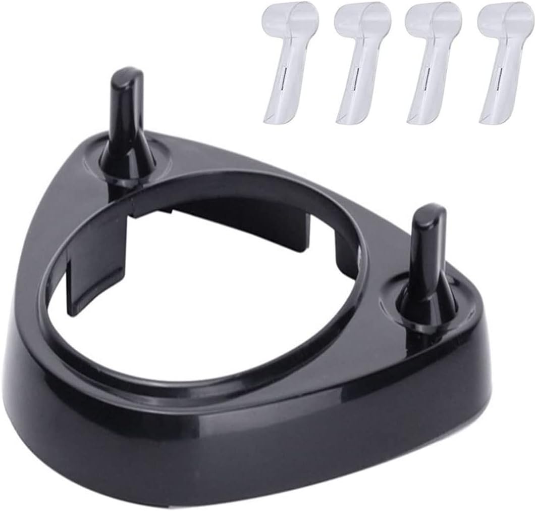Toothbrush Holder Base Stand Electric Toothbrush Head Support Black Compatible for Braun Oral B Toothbrush Charger with 4 Pack Electric Toothbrush Heads Cover