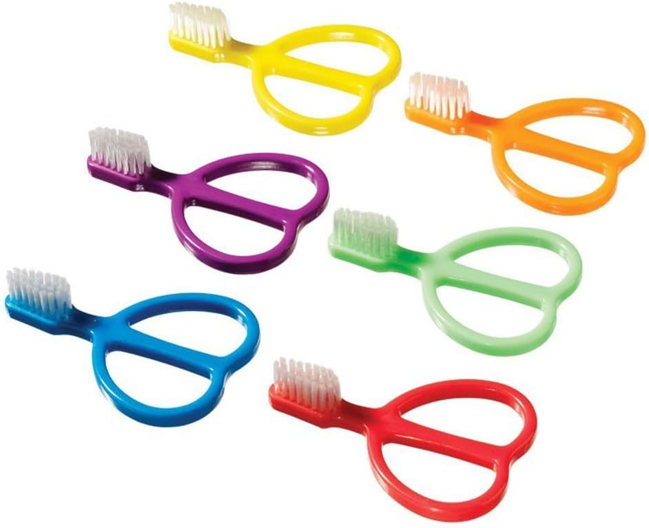 These toothbrushes are designed for safe brushing, as the oversized handle prevents the brush from being pushed too far into a child’s mouth.