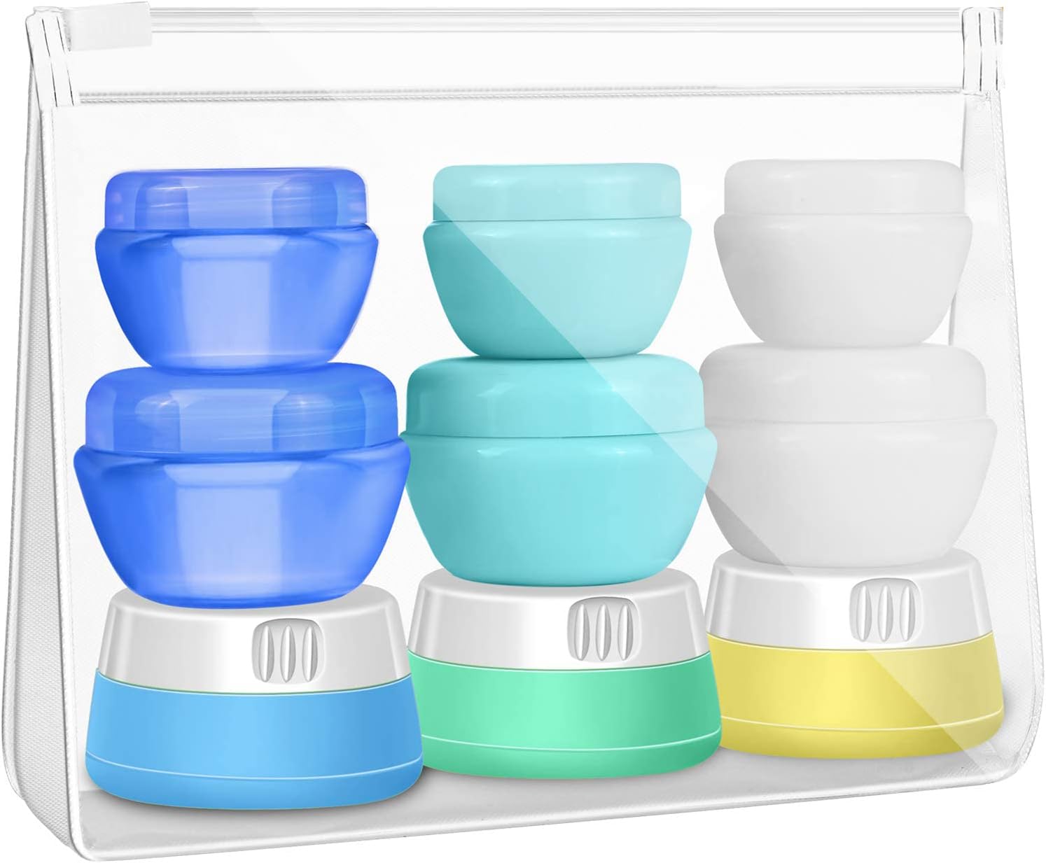Package Includes: 3pcs x 20ml silicone travel containers 3pcs x 20ml plastic cosmetic containers 3pcs x 10ml plastic small cream jars 5pcs x small spatula 1pcs x toiletry case Product Features: 20ml silicone cream jar size: approx.