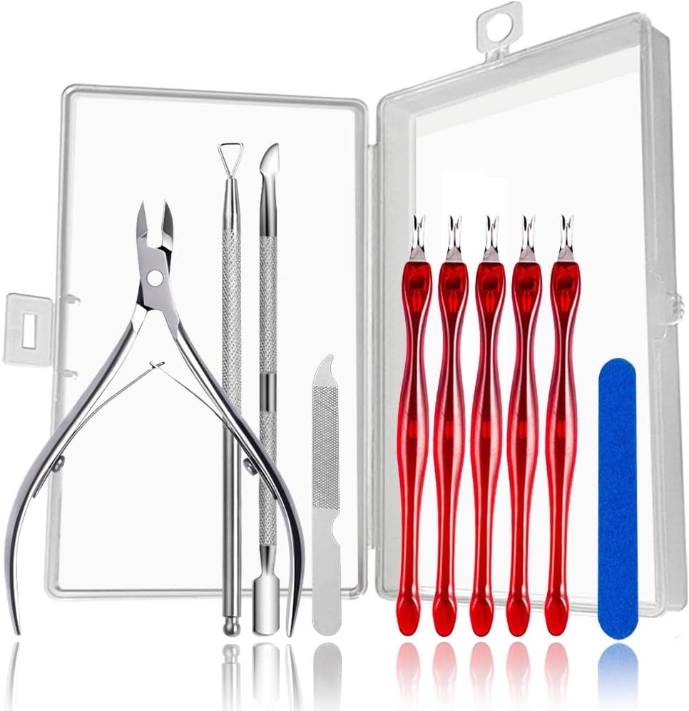 • 10 in 1 Nail kitCuticle Trimmer, triangle Cuticle peeler scraper, Nail Cuticle Pusher, Stainless Steel Metal Nail File, Disposable Nail File and 5packs Nail dead skin fork,They come in a small portable box