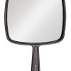 The TV Mirror is a standard plastic handheld mirror that can also be hung on a wall, as it has a hanging hole in its handle.
