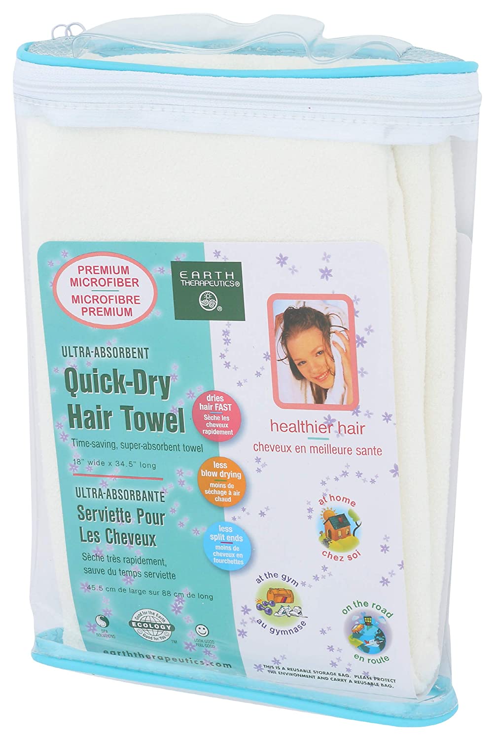 Earth Therapeutics quick Dry hair towel, cut from angel-texfaster absorption than ordinary fabricsfiner than conventional micro-fiberlight soft super-absorbent towel machine washable This ultra plush towel is cut from angel-tex – a revolutionary fabric that absorbs excess moisture (such as water and sweat) much more quickly than ordinary fabrics.