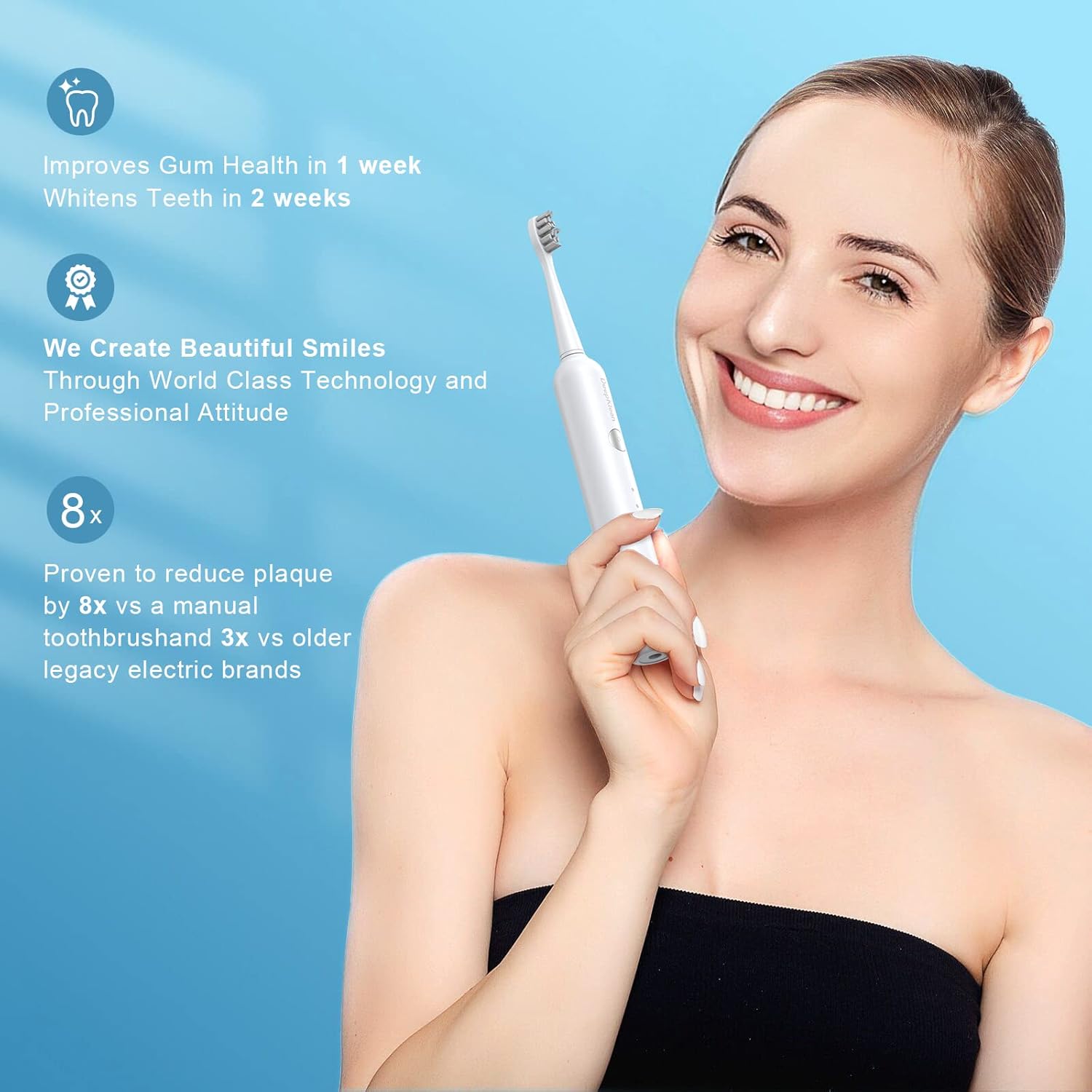 40,000 VPM Sonic Toothbrush – for a Great Deep Cleaning. The Electric Toothbrush is a world class modern toothbrush packed with the most up to date technology. It features an ultra-powerful and industry leading motor producing 40,000 vibrations per minute , Long-Last battery, USB ultra-fast charging, 6 mode operation, smart vibration timers, 8 DuPont engineered brush heads and bristles, and a custom travel case; all with a sleek ultra-slim, lightweight and IPX7 rated waterproof design.