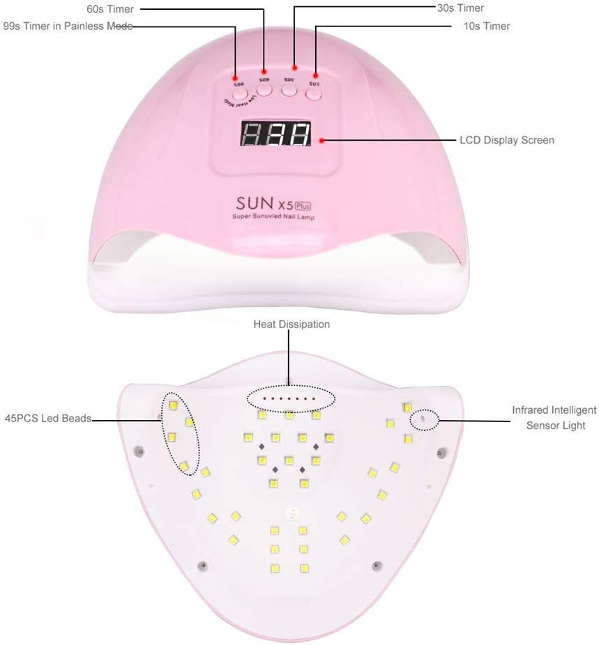 SUN x5plus UV LED nail lamp works well for all kinds of gel polishes, not for regular nail polish.