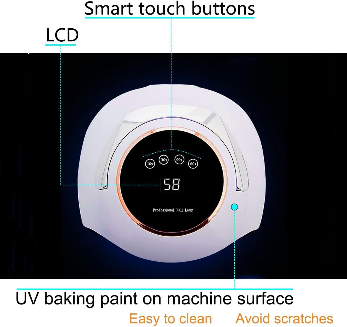 High energy efficiency 60 lamp beads, Curing all kinds of gel polish within 10s, save your time up to 85% .