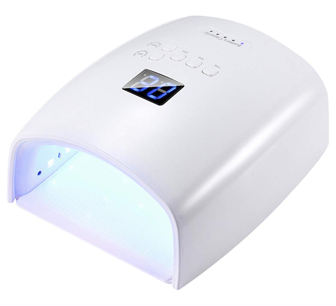 Rechargeable Cordless Design: Rechargeable gel nail LED UV light, equipped with a new professional designed UV+LED dual light source. Curing more faster, with smart automatic infrared sensor & time touch button control, an LCD display screen for service time left and power state showing