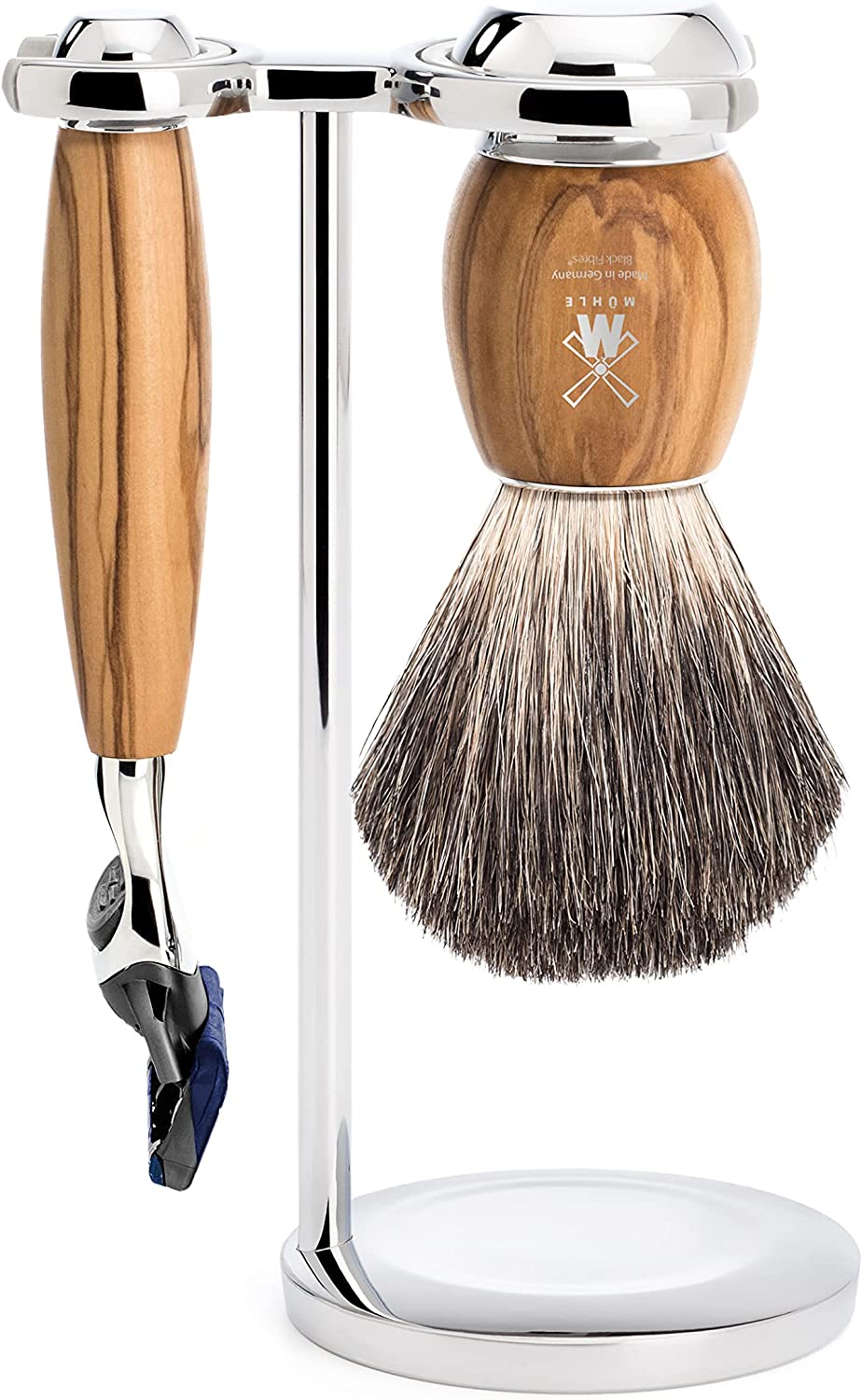 VIVO Olive Wood 3-Piece Pure Badger 5-Blade Razor Shaving Set