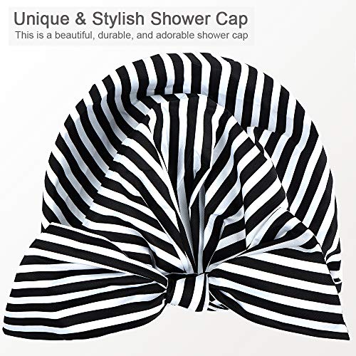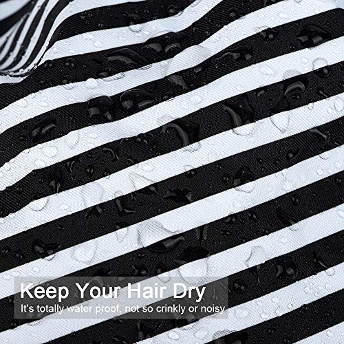 Unique Design– The cute shower cap design is adorable with the black and white stripes print, bow, and turban appearance. The shower cap for women has a shapely hem with the elastic, it keeps your hair dry in the shower and bath, and its not crinkly.